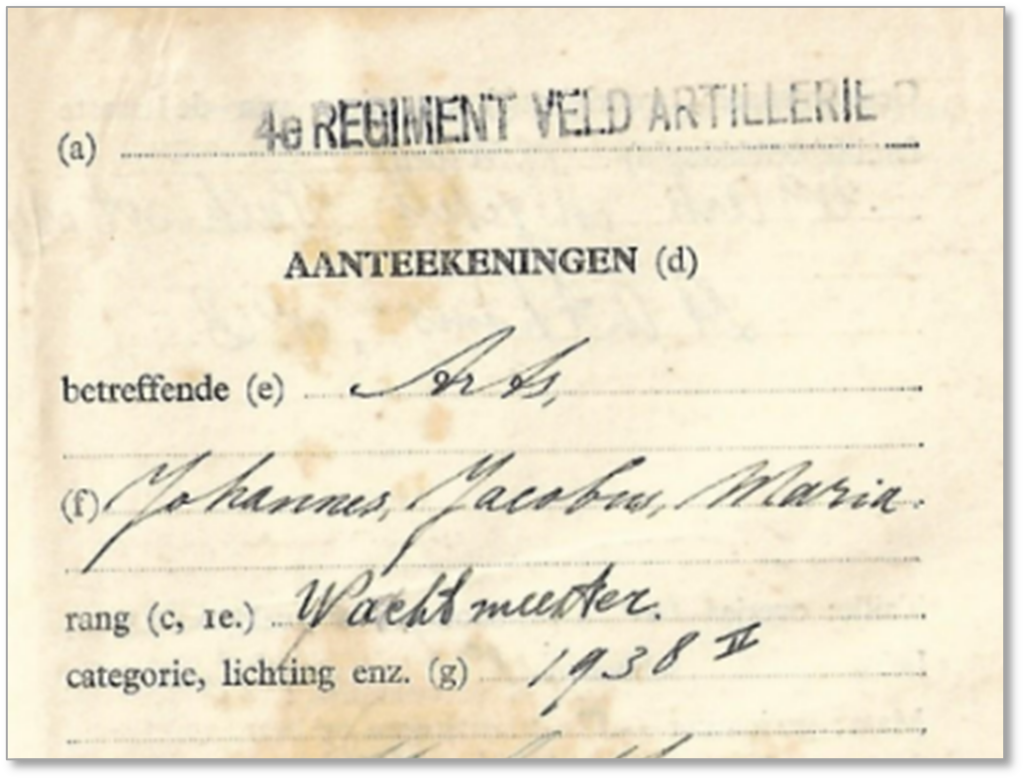 In september 1939 valt Duitsland Polen binnen en vanaf dan wordt het Nederlandse leger gemobiliseerd. Jan Arts (1918-2004) uit Sint Anthonis, de oudste zoon van Willem Arts (1894-1986) uit het verhaal Sint Tunnis, is op dat moment wachtmeester bij het 4e regiment II-Dep bereden veld artillerie.