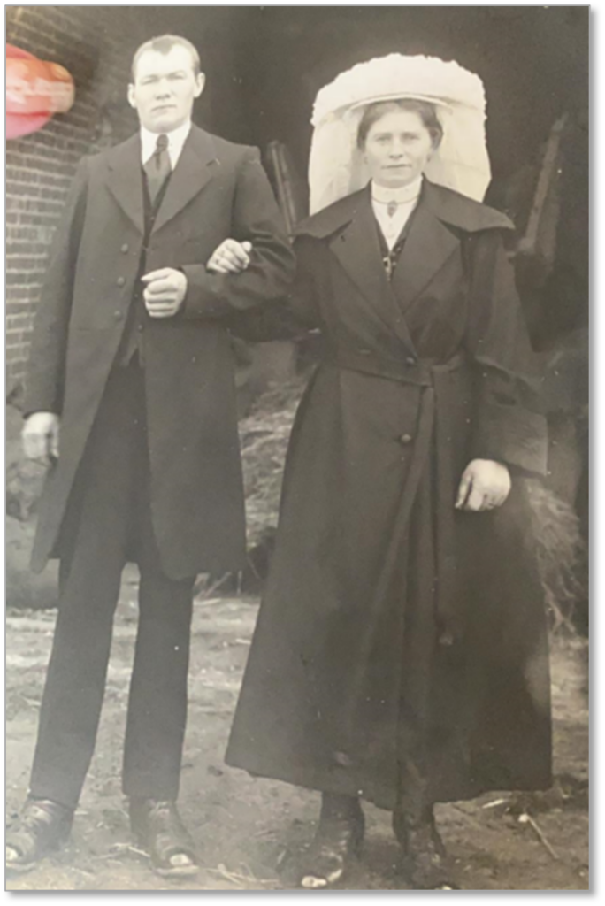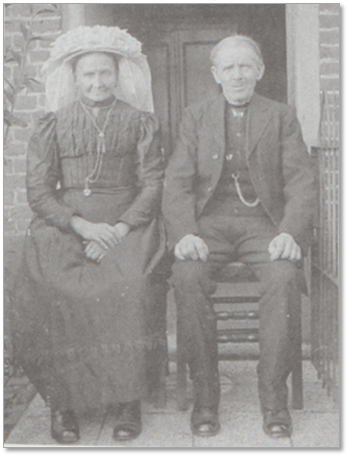 Arnoldus Arts (1864-1932), een zoon van Willem en Anna Maria, neemt de boerderij over met zijn vrouw Joanna Giesbers. De verkoop in 1893 gaat via Johannes Christianus Arts (de burgemeester eerder in dit verhaal) als tussenpersoon. Hieronder staan Arnoldus Arts en Joanna Giesbers (1870-1942) zowel in werkkleding als in hun zondagse pak (Alle Minse van Oploo).